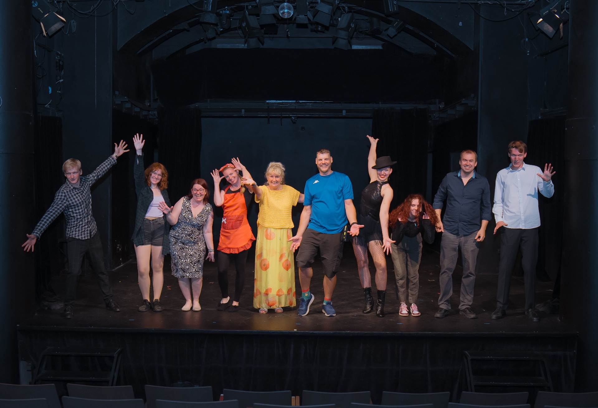 Naši herci a tvůrci přinášejí na jeviště vlastní témata, zkušenosti a smysl pro komedii. Výsledkem jsou živá představení, která baví, překvapují a často i mile škrábnou po duši. Věříme v divadlo, které se nebojí být osobní, současné a především upřímně zábavné.